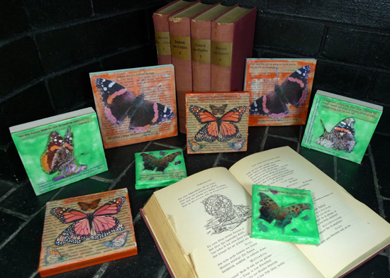 If jewelry isn’t on your loved one’s wishlist, I have another solution as well (eight for now, actually). Remind a recipient of you every day with a Desktop Mini, a small encaustic collage they can place on their desk, night stand, or bookshelf. Sizes range from 3 inches square to 5 inches square. My current collection is uploaded as well.