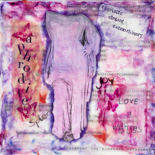 Sassy Aphrodite encaustic collage by Maike’s Marvels