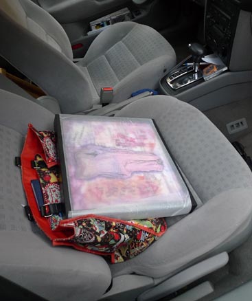 Sassy Aphrodite put on her raincoat (of wax paper) on a stormy day, and enjoyed the ride to her new sleepover location.