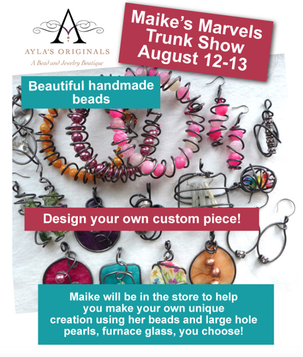 Ayla’s Originals offers freshwater pearls, Czech glass, Swarovski crystals, antique trade beads and gemstones from all over the world. If you see something you love in the store this weekend, I am happy to design a piece if you aren’t interested in creating your own.
