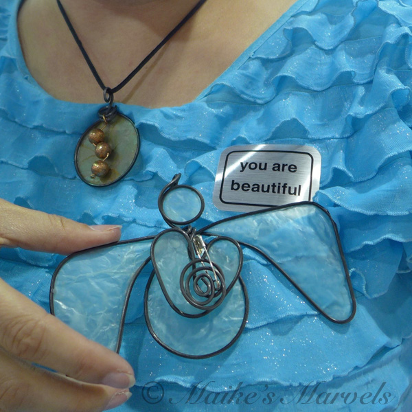When I went to the Bead & Button show in June I stopped by Ayla’s booth first, and was promptly stickered by Joe.