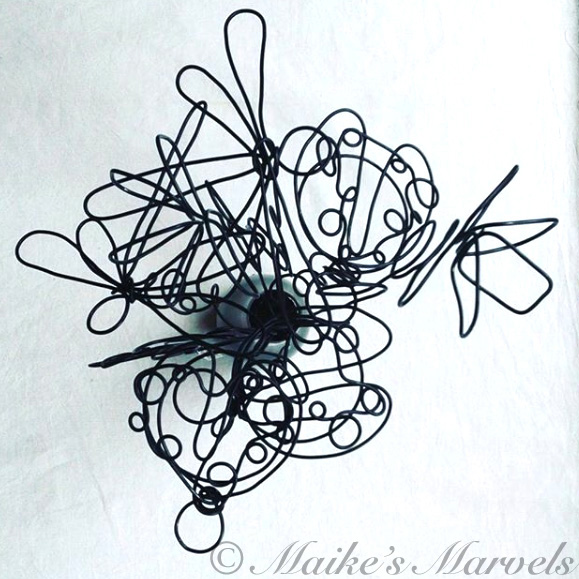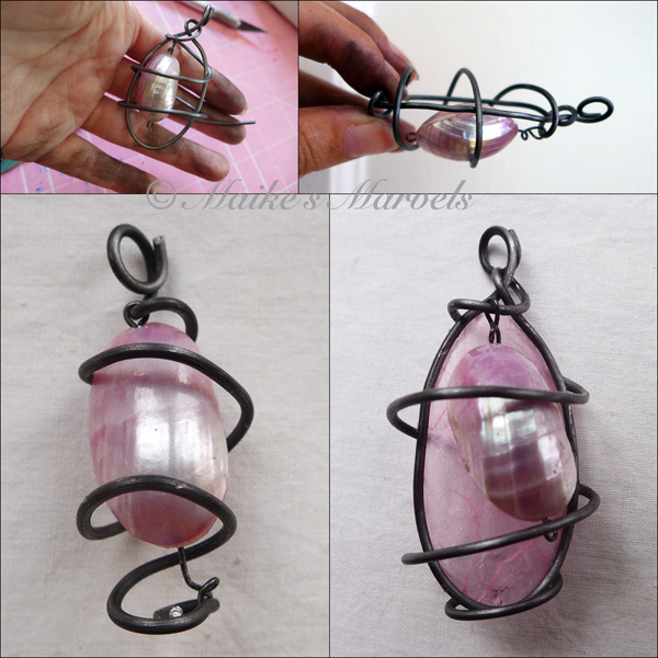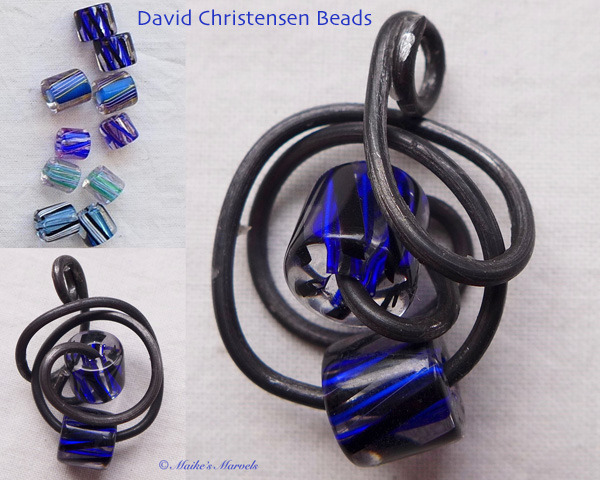 Ayla’s store has many beads that can be strung directly onto the steel wire for a swinging bead effect. David Christensen creates a gorgeous array of glass beads that I have had in my collection for a while. This pendant will get some matching earrings too, though whether that happens by Saturday is still a question mark.
