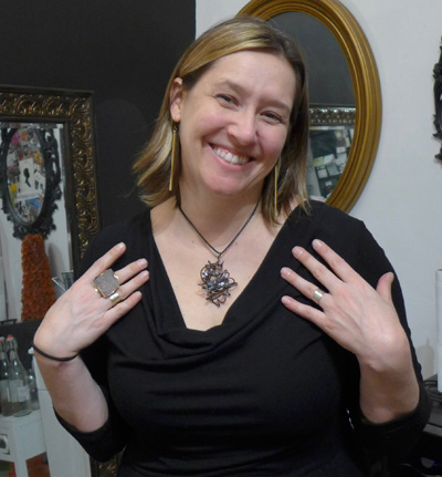 Jaime of Stumble & Relish wore her new pyrite pendant out the door.