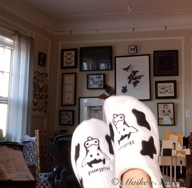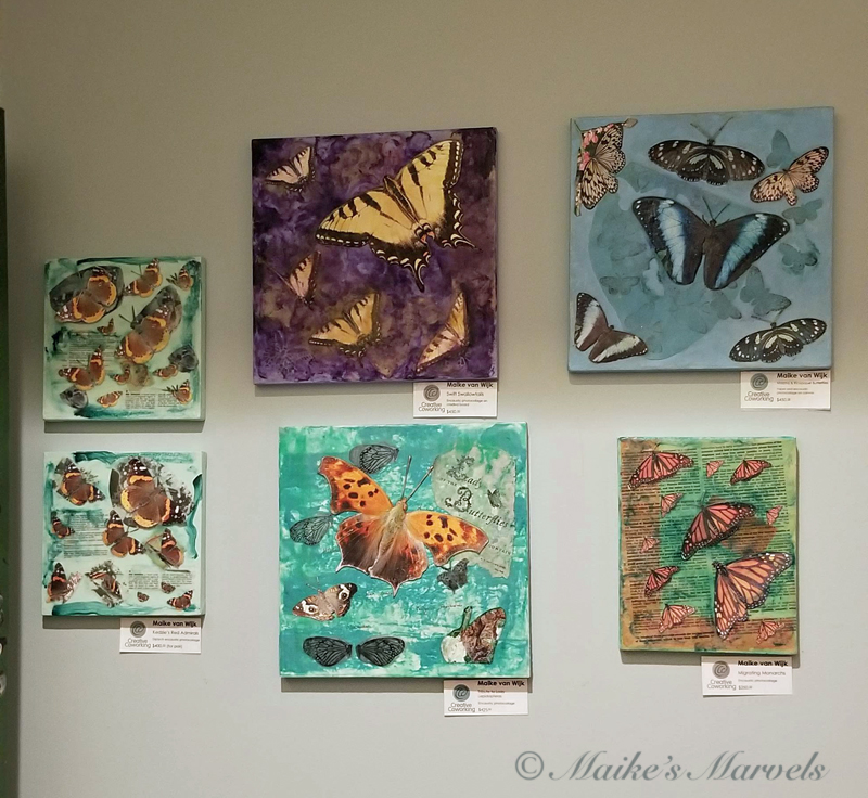 Meanwhile, my Encaustic Butterfly Collages had flown to a hallway corner, where I enjoyed them among other art.