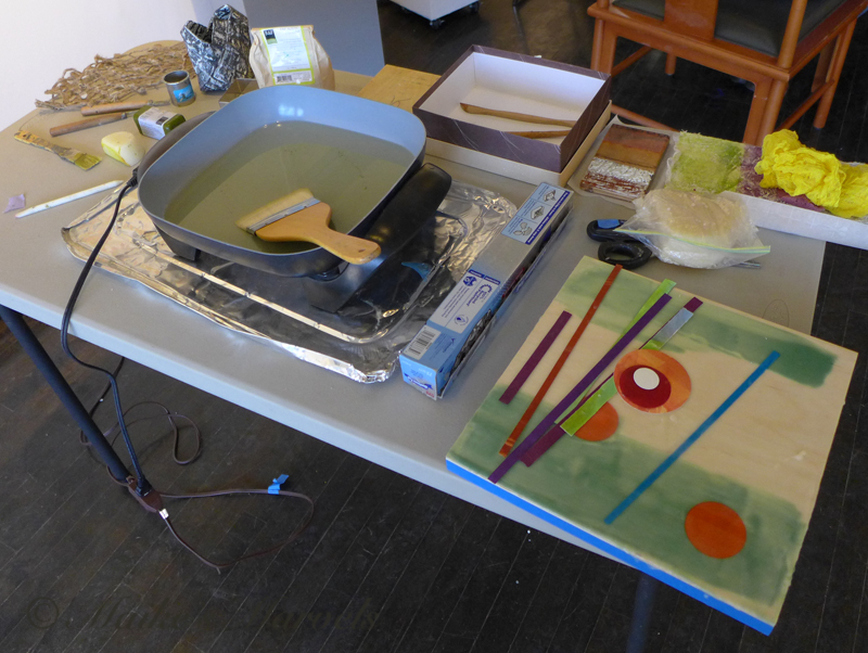 It was wonderful to see Karen, who lives abroad for part of the year, and see her new dimensional paper and encaustic creations up close.
