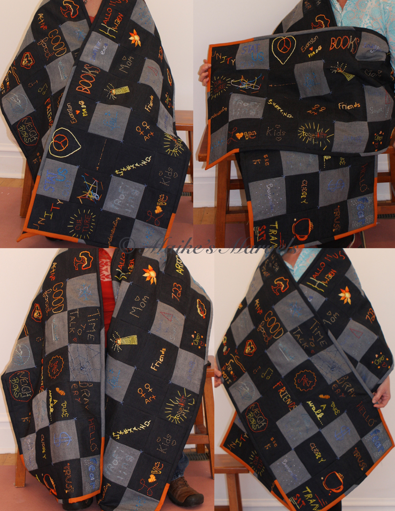 He gathered the 40+ quilts squares numerous attendees created, and then stitched them together into a gorgeous 8-foot quilt.