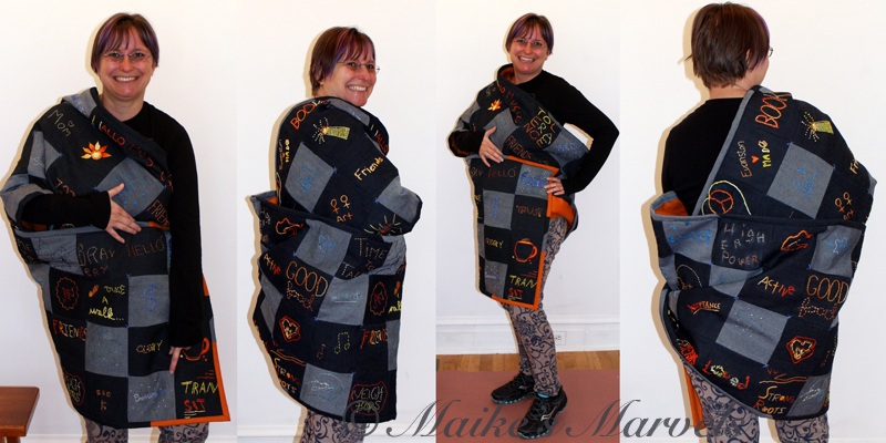 I had fun rolling myself into this beautiful piece, and admired the handiwork of my friends.