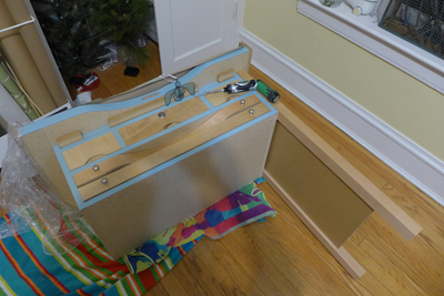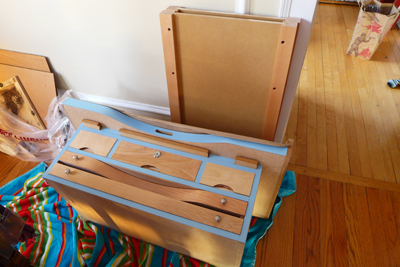 Initially I held off on assembly to get the closets installed first, but a delay in shelving had me itching to assemble this before the studio was fully re-assembled.