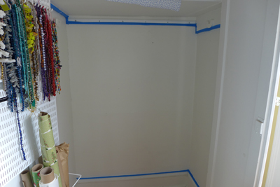 Meanwhile, my shelves are on order for next week’s closet organization. Elfa has a fabulous wrapping station that I modified.
