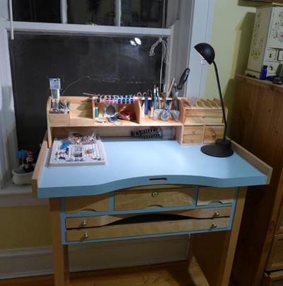 As I reviewed other people’s spaces in books and thought about my needs, I started poking around for jewelers’ workspaces online, and came across fabulous workbenches.