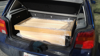 After getting it loaded into my trunk (barely) I happily awaited my friend’s muscles to carry it up three flights of stairs.