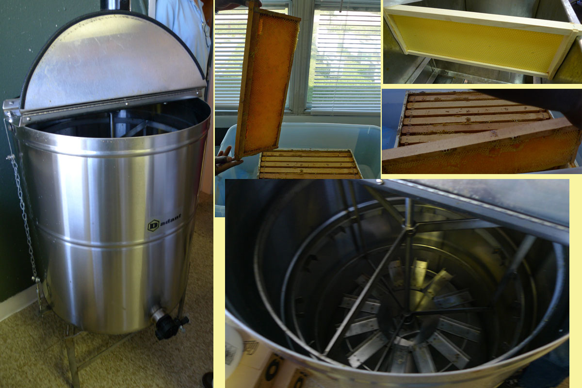 We left the apiary to enter the kitchen, where the honey extraction takes place. Around October, harvest season begins, and the frames with honeycombs are removed from the hive. The frames are decapped, and placed in the extractor, which is spun to extract the honey by centrifugal force.