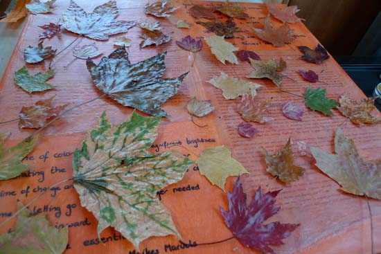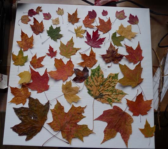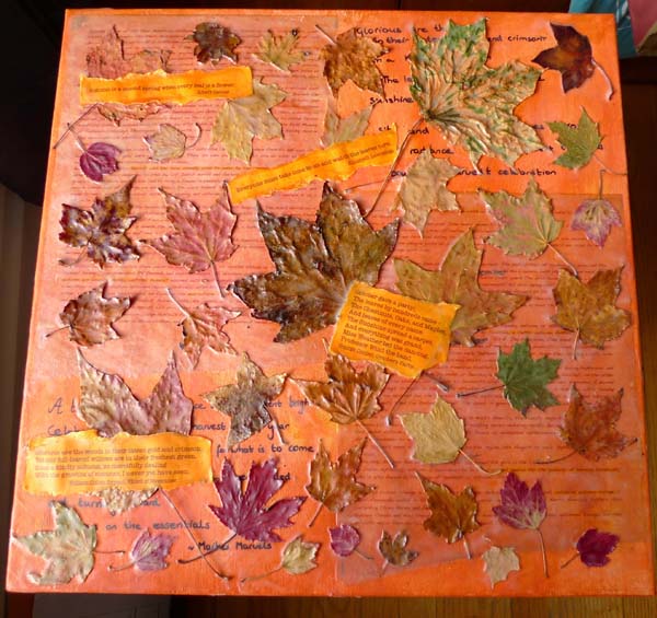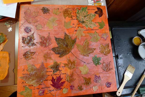 I wanted to incorporate my leaf collection into beeswax. First I did a practice run with smaller canvases (also on Etsy).