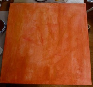 Deciding on a background color took a few days until the golds of the trees inspired me. This is Yellow Ochre blended with Crimson acrylic paint (Reeves).