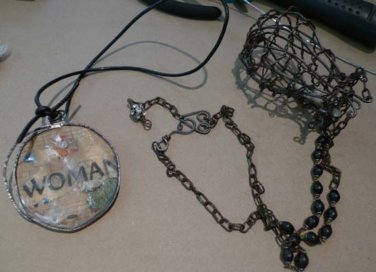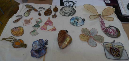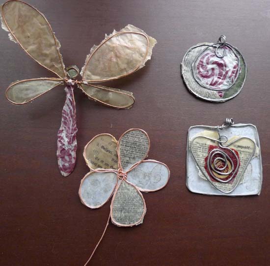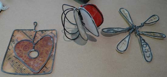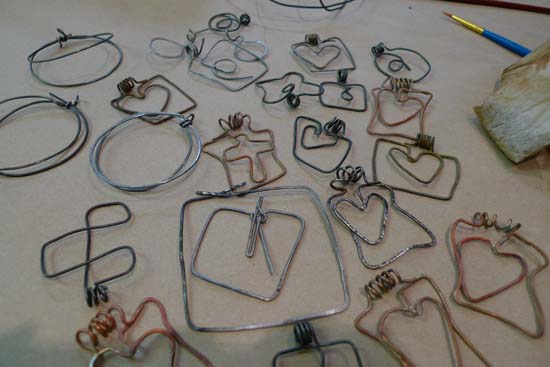 Crystal, who enjoys bringing new life to old objects from her vintage finds in both collage work and this wire work, had brought several samples from which we could take cues.