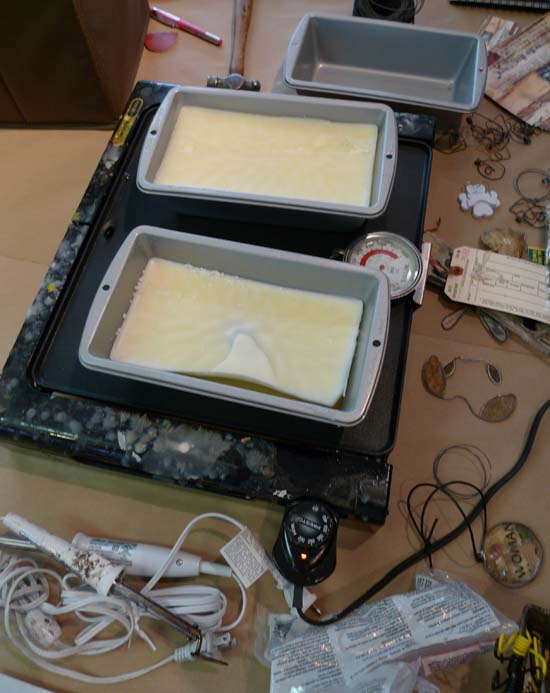 A few of us played with colored wax, pan pastels and PearlEx pearls to add color to our creations.