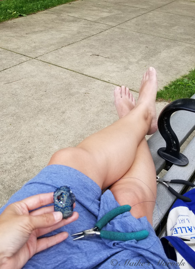 When I got home from Bead & Button we had a lovely afternoon that lent itself to park sitting. This time, instead of bringing a book I took along wire and one of the Druzy stones I had purchased from Elka Designs.