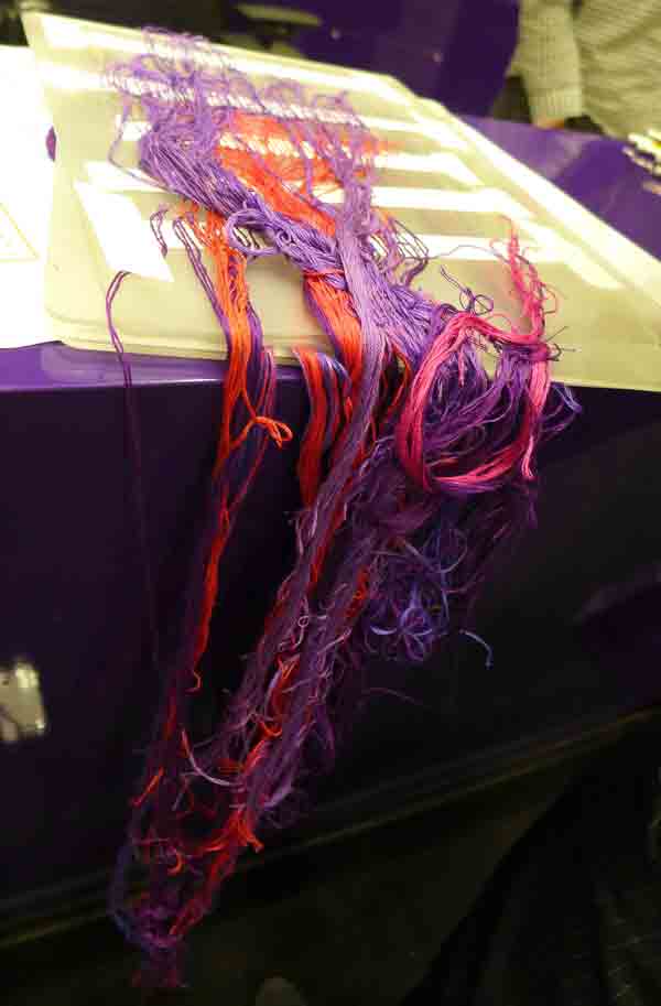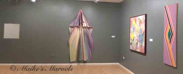 A companion exhibit also drew my attention, showcasing fiber and visual arts. Experiments in Form: Sam Gilliam, Alan Shields, Frank Stella showcases the examination of art as more than 2-dimensional paintings on a wall.