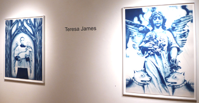 Two other artists opened solo shows the same night, Teresa James whose cyanotype/drawings deal with religion and faith in Not All Angels Have Wings.