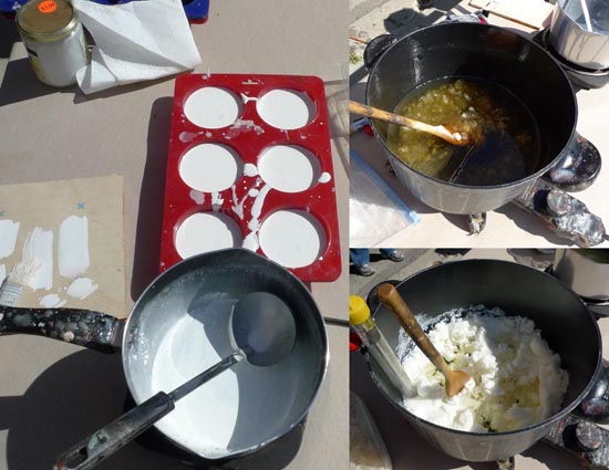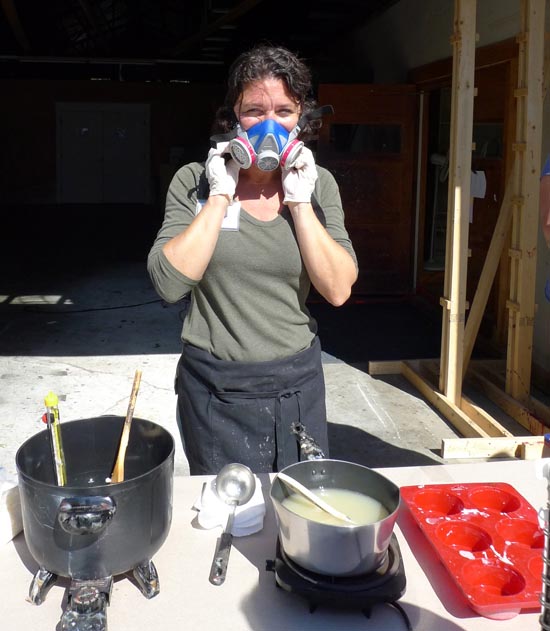 After our morning excursion it was time to take the Do-it-Yourself class, where Kim taught us how to make cradled boards, blend our own encaustic medium, and color our own wax with pigment.