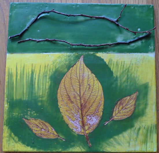 Later in the afternoon, we were instructed on making leaf stencils and on how to incorporate organic materials into the wax. While I had been experimenting with embedding before, it was good to learn the do’s and don’ts. (Undried leaves will rot even when encased in wax).