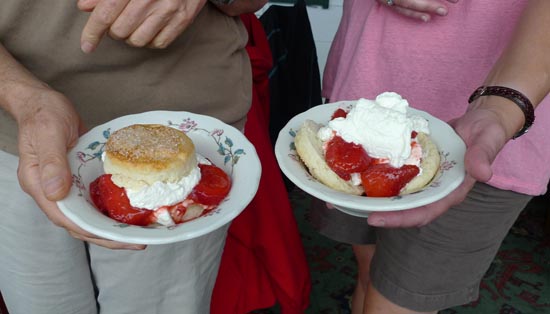 We returned for lunch, and the spreads were amazing every day. One day our dessert was strawberry shortcake, which resulted in three tutorials for me on how to make the best shortcake.